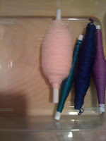 (This week I took pictures of my bobbins and all the other bobbin boxes in the factory. They become evidence of personality. I love that. Perhaps more on this idea next week.)